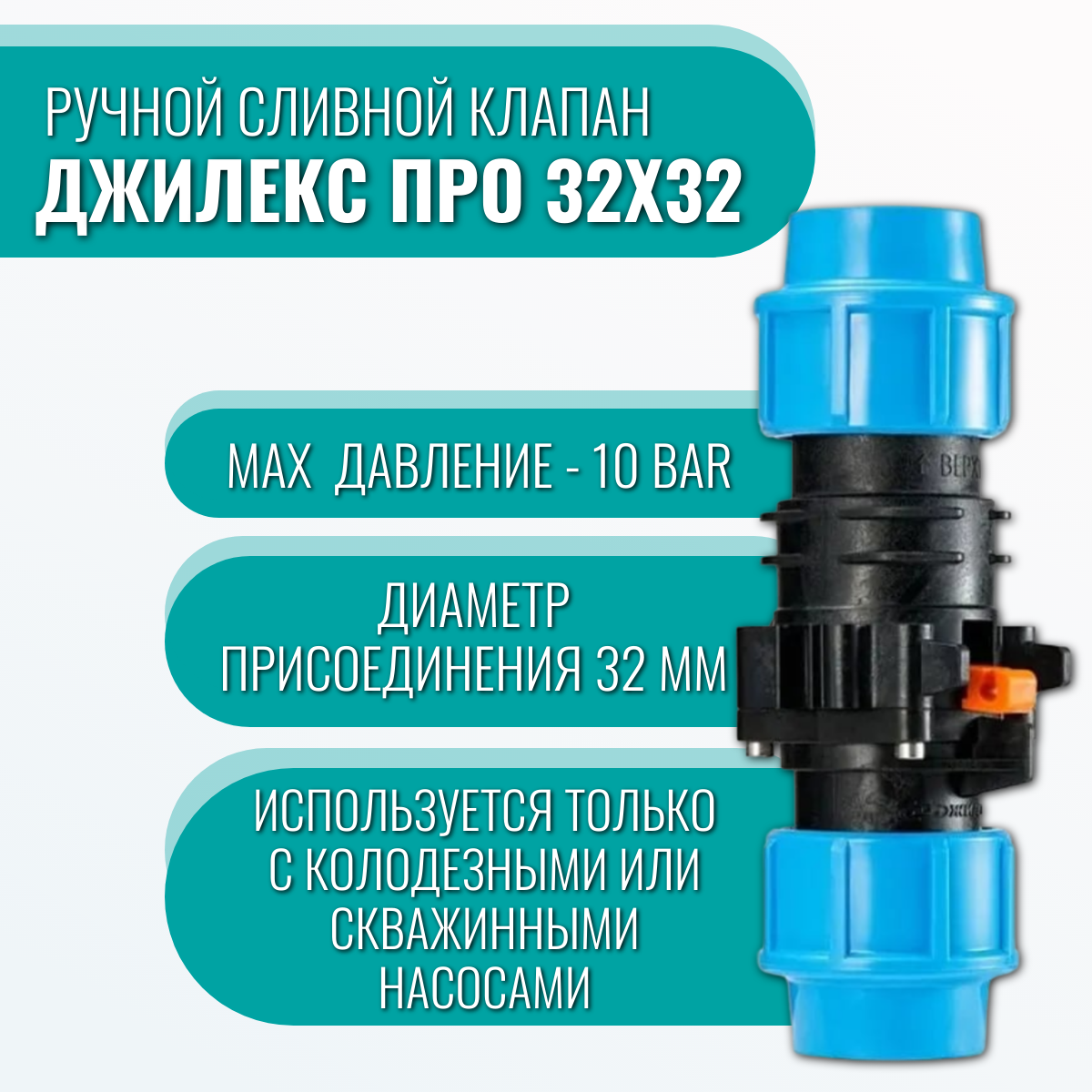 Клапан сливной Джилекс про 32x32 Устанавливается в разрыв трубы. Для скважинных и колодезных насосов