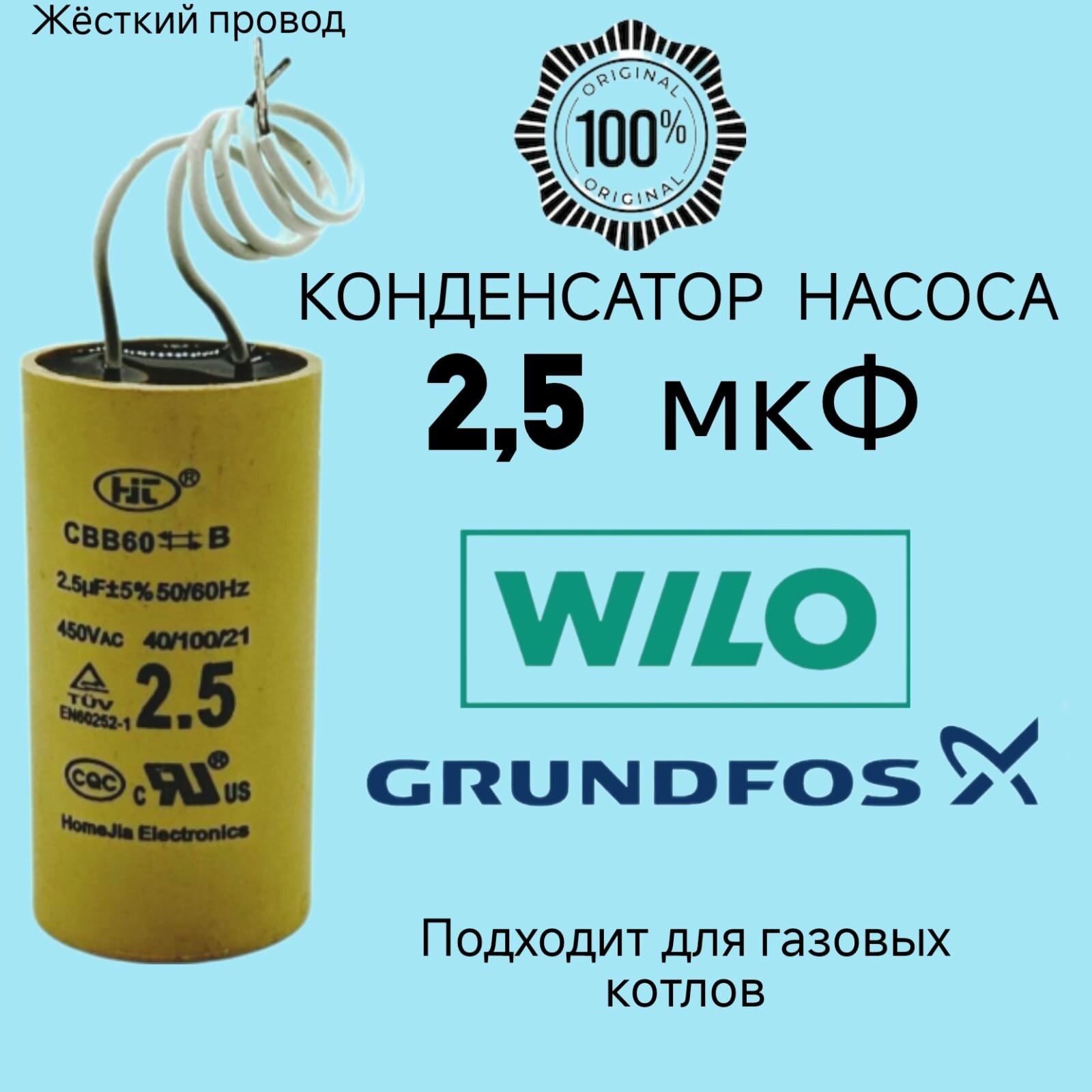 Конденсатор 2,5 мкФ для циркуляционного насоса Wilo, Grundfos интересное: