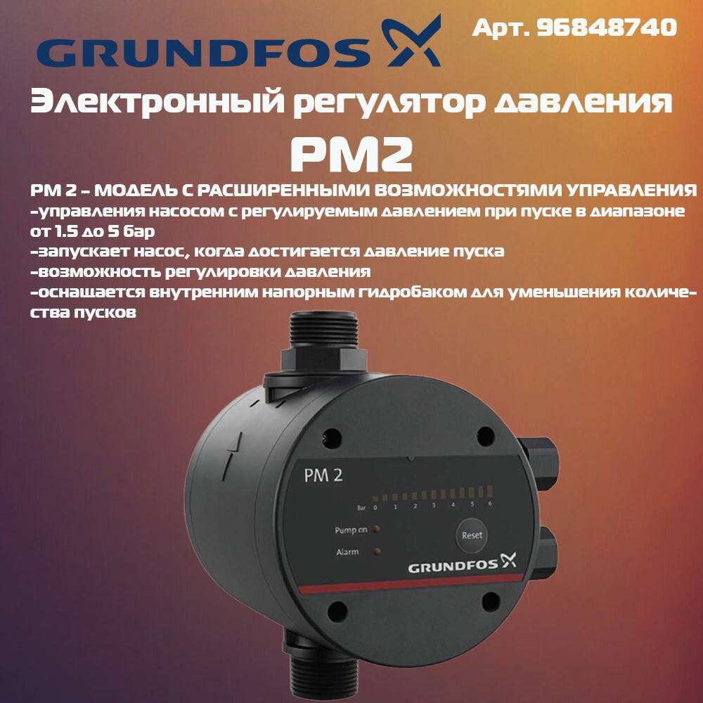Реле давления с защитой от "сухого хода" и индикацией текущего давления, 1,5-5бар, Grundfos, PM 2, 96848740 интересное: