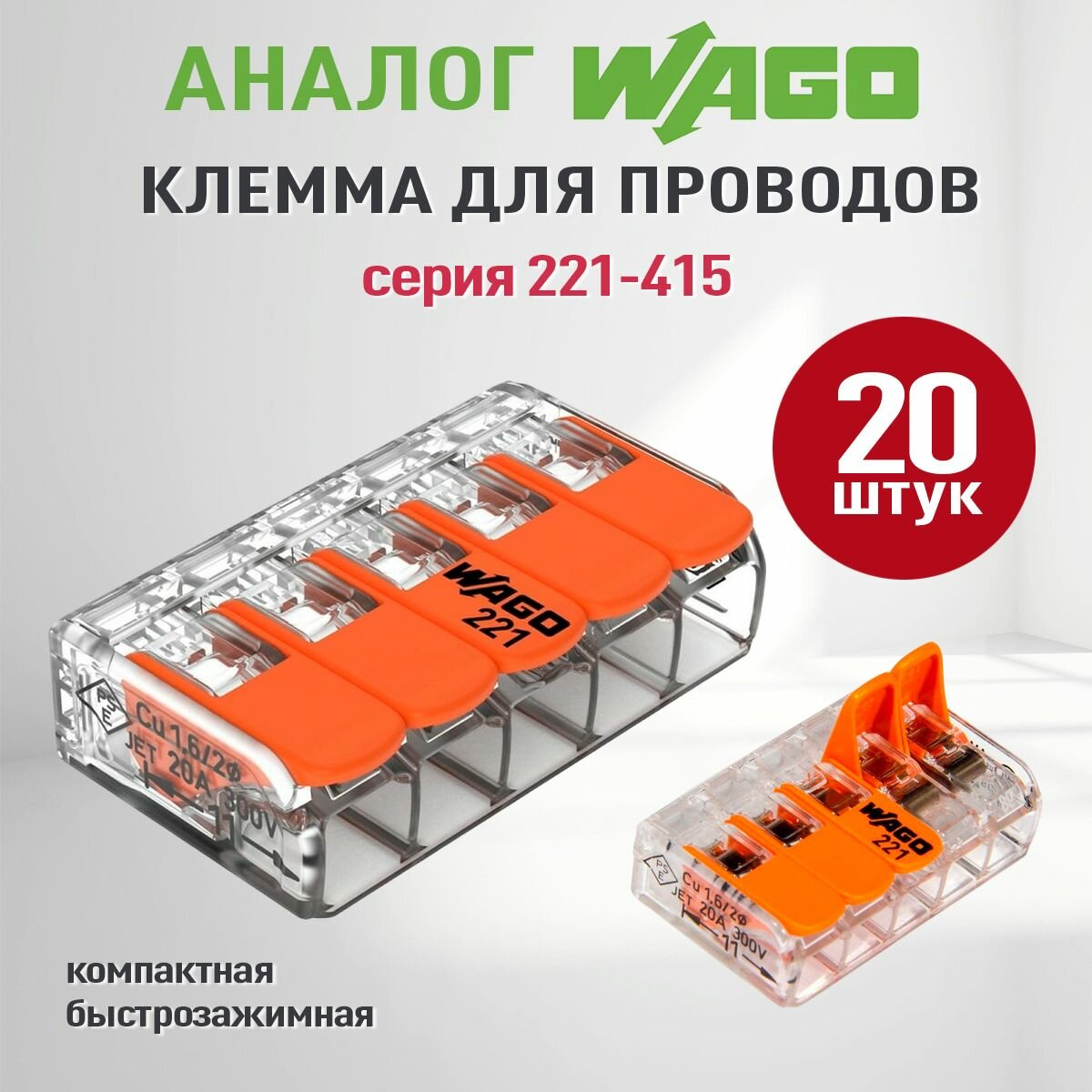 Соединительные клеммы Wago (Аналог Wago) для проводов, ваги 221-415, 20шт. интересное: