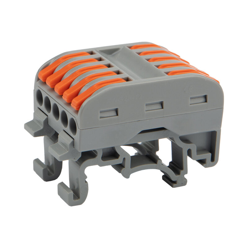 Купить Клемма СМК 222-425D проходная 5-полюсная, с креплением на DIN-рейку (0,08-4 мм²) серая