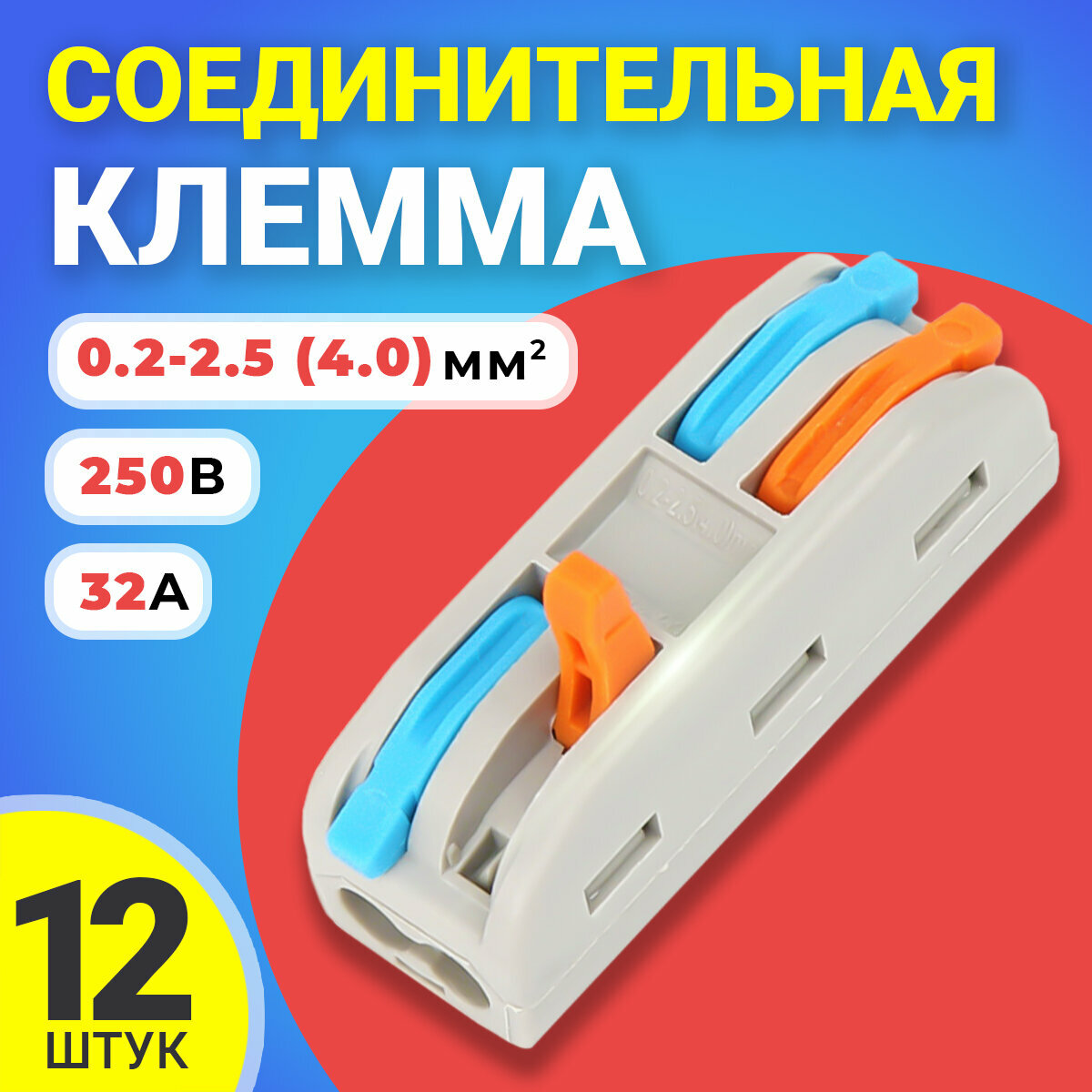Клемма для проводов соединительная РСТ-2-2 клеммник проходной быстросъемный колодка клеммная на 4 контакта, 12 штук (Серый) интересное: