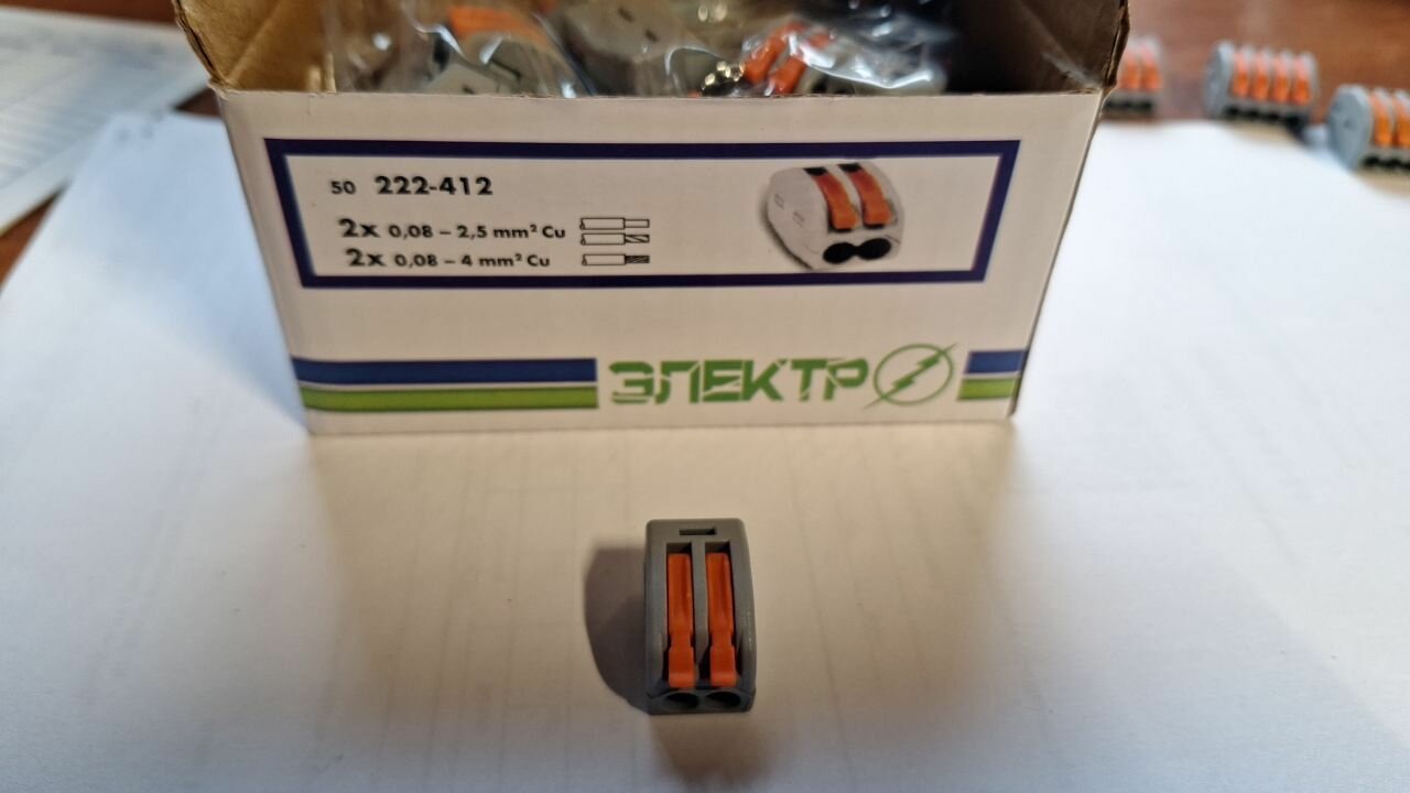 Ниже Вы можете прочитать отзывы на Клеммы для проводов зажимные, клемма 222-412 Электро (Аналог Wago/ ваго) - 50 шт, ознакомится с подробными характеристиками, посмотреть интересные обзоры и фотографии на Клеммы для проводов зажимные, клемма 222-412 Электро (Аналог Wago/ ваго) - 50 шт.