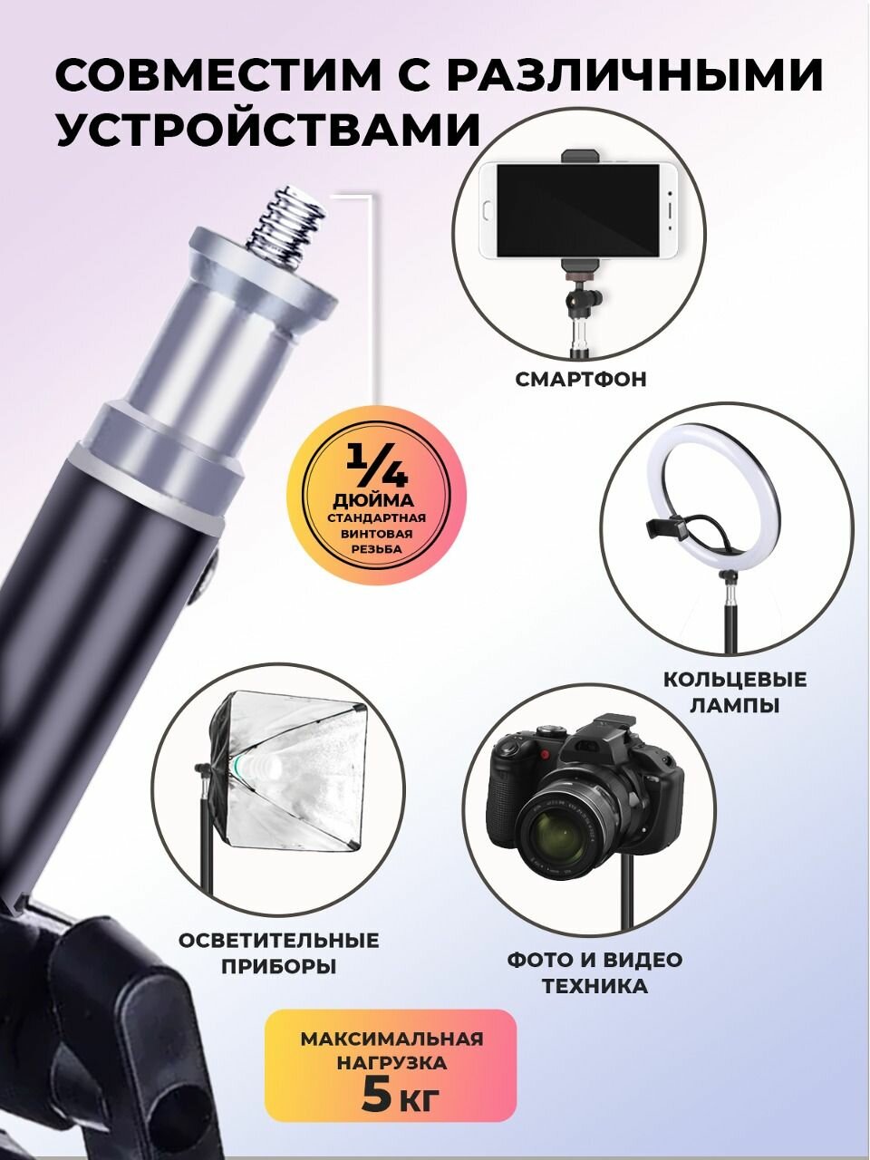 Штатив для телефона Classmark напольный, тренога для мобильного телефона, трипод, минимальная высота съемки 70 см, максимальная высота съемки 210 см, черный интересное: