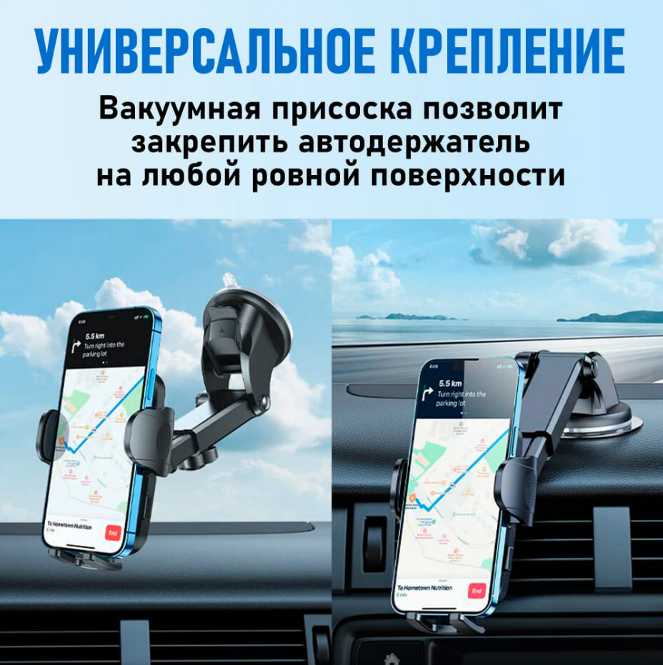 Купить Держатель для телефона автомобильный с креплением на присоске, 3 способа установки
