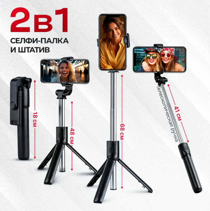 Штатив монопод селфи палка для телефона с Bluetooth пультом интересное: