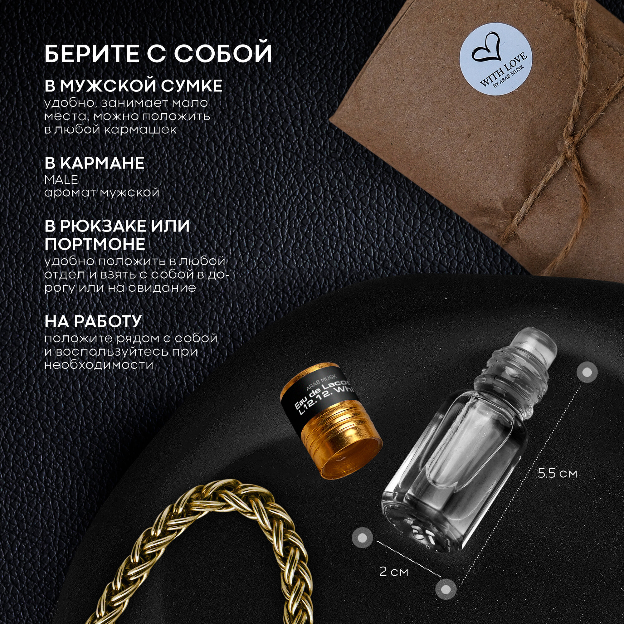 Мужские стойкие духи Eau de Lacoste L.12.12. White Arab magic, объем 3 мл роликовый аппликатор интересное: