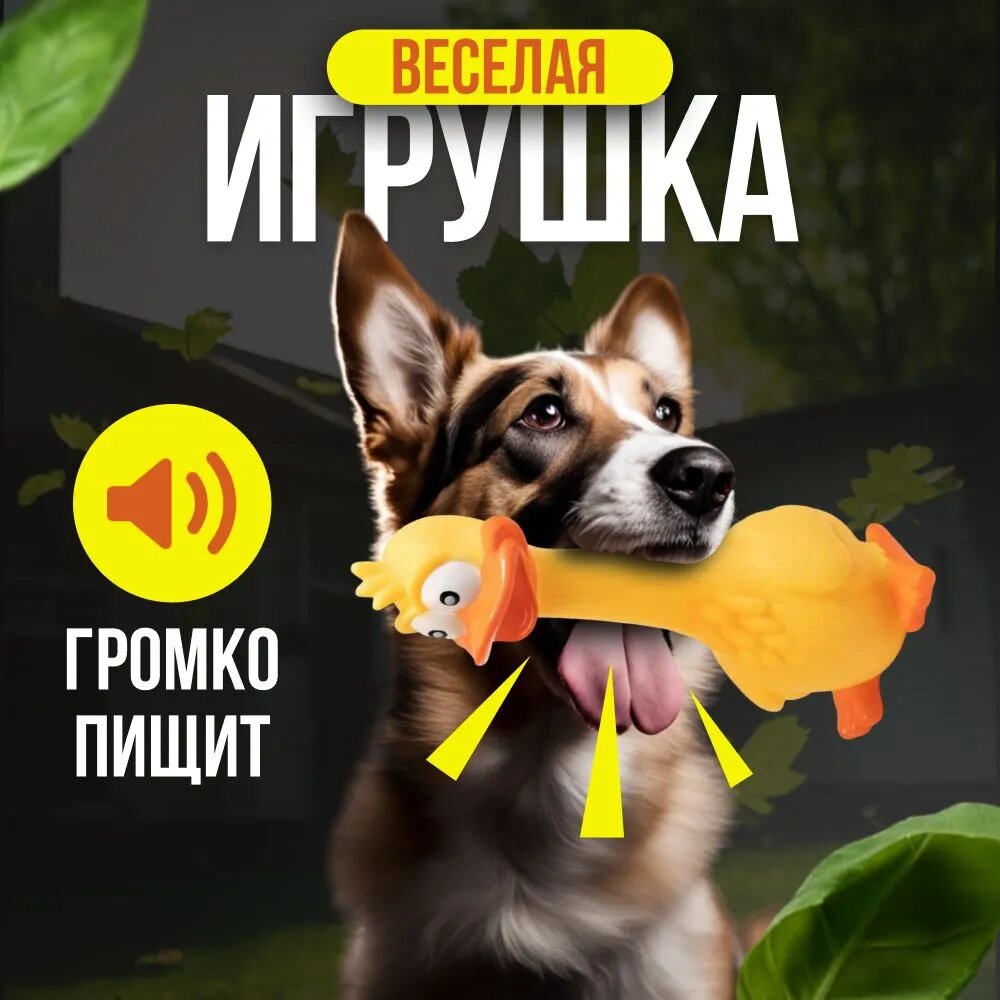 Игрушка для собак щенков "Желтая утка" 17 см; зоотовары для животных интересное: