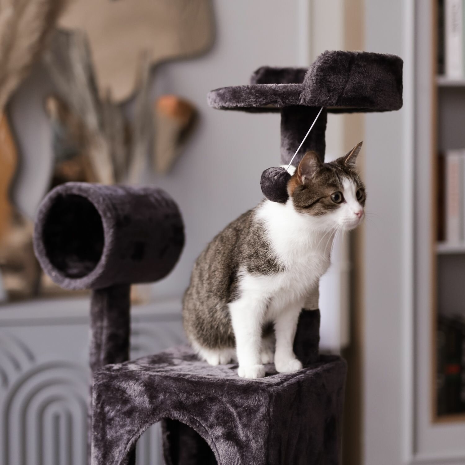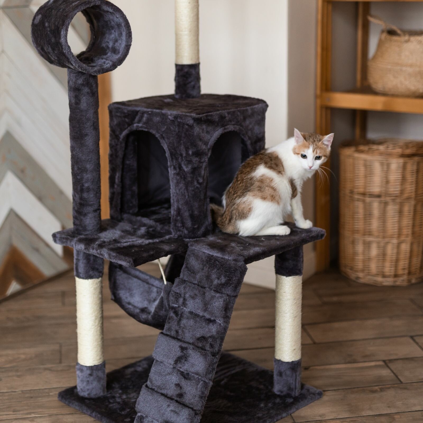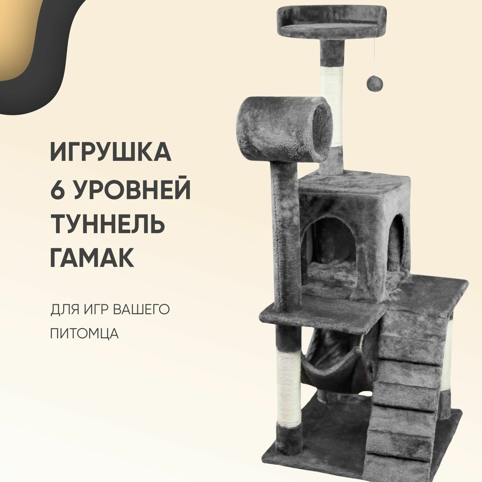 Когтеточка-комплекс для кошек, для котов, для животных, "Не Один Дома" Блэки, черный, 48х48х125 см интересное: