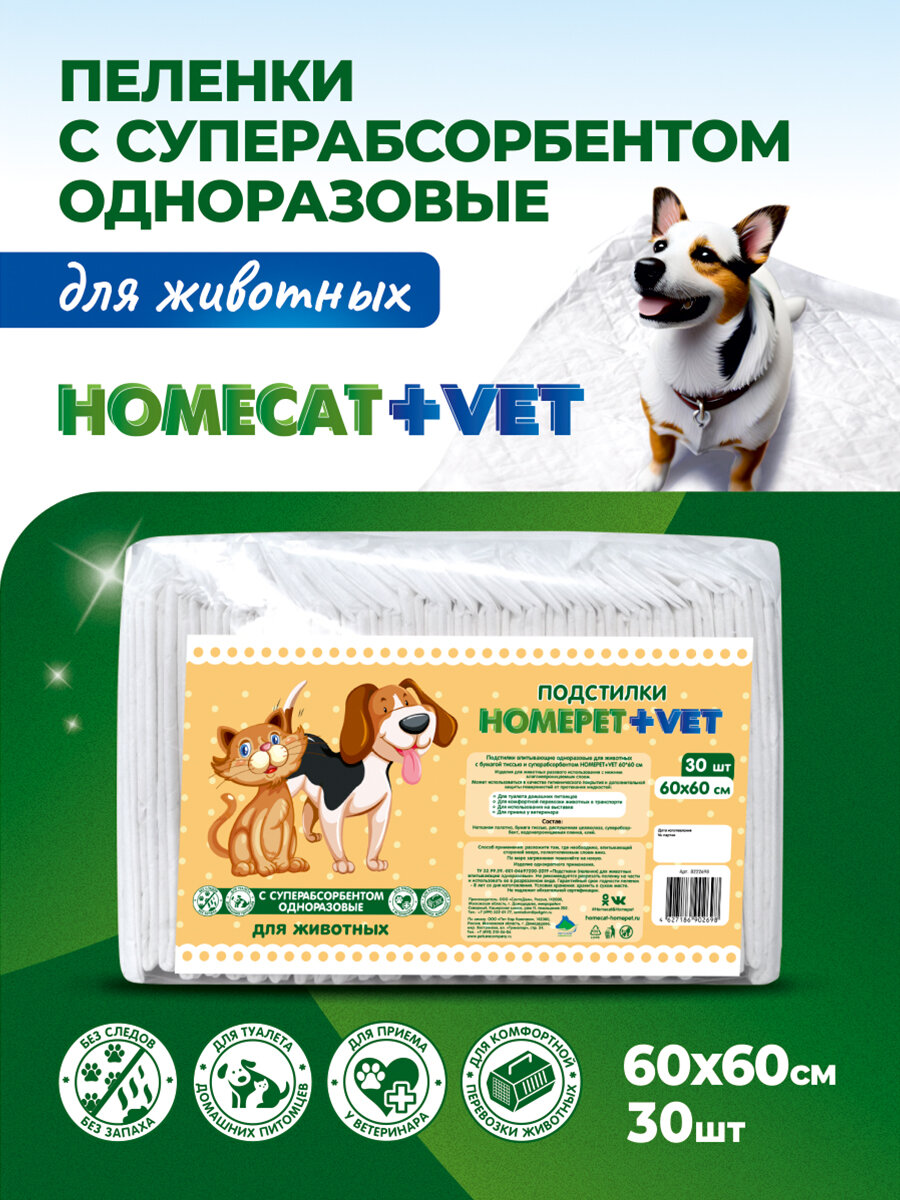 HOMEPET VET 30 шт 60 см х 60 см пеленки для животных впитывающие гелевые интересное: