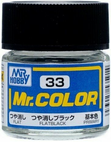 Краска акриловая на специальном разбавителе для сборных моделей MR.HOBBY Mr.Color Flat Black, матовая, 10 мл, MH-C33