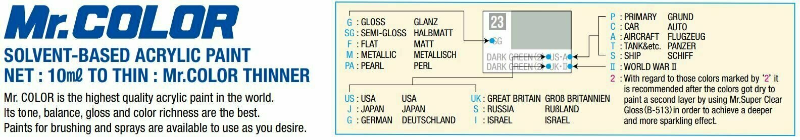 Краска акриловая на специальном разбавителе MR.HOBBY Mr.Color Dark green, матовая, 10 мл.