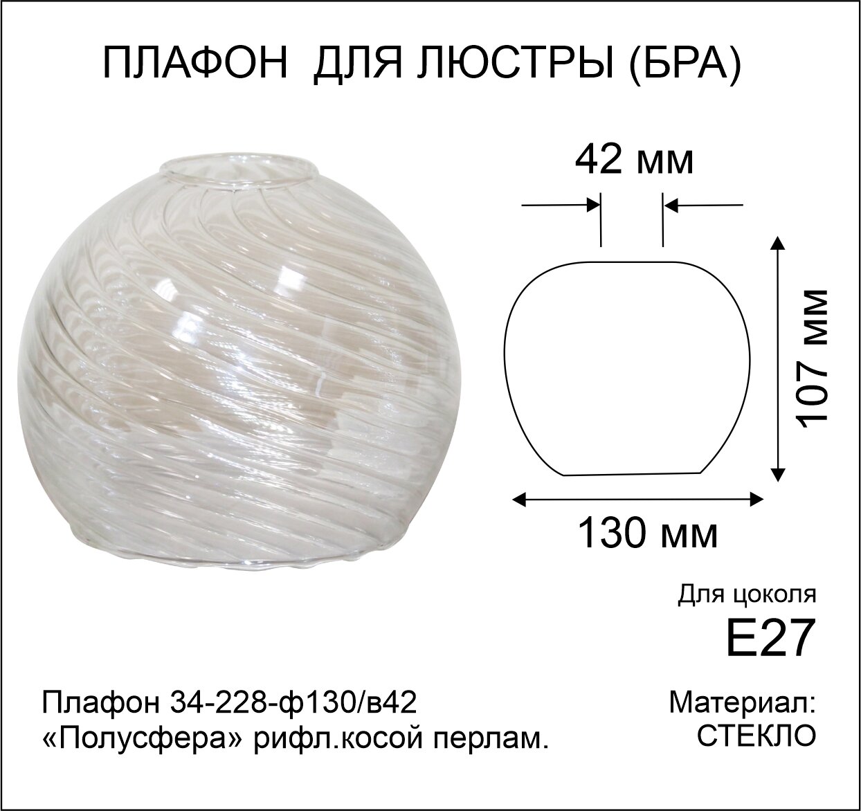 Плафон стеклянный «Полусфера» рифленый косой перламутровый интересное: