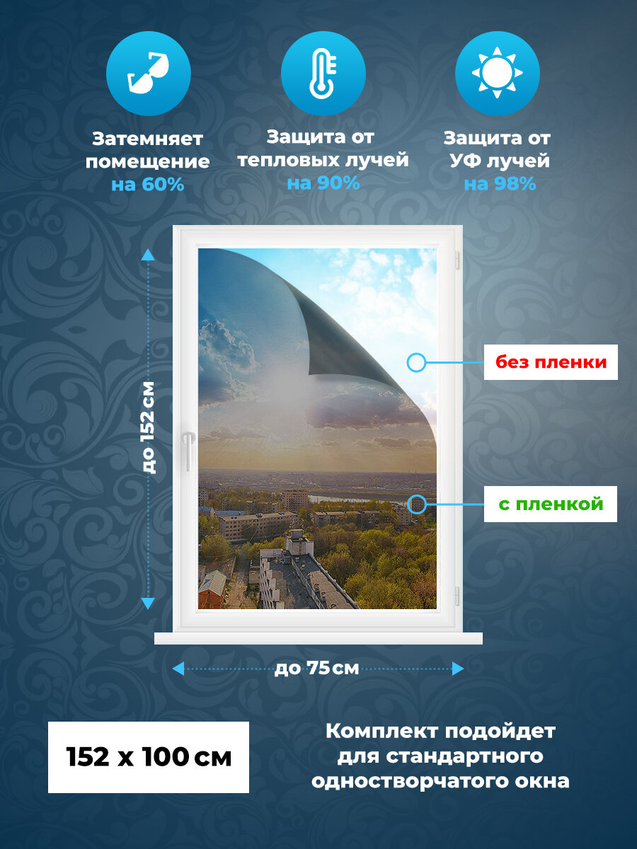 Солнцеотражающая пленка на окно. Пленка тонировочная для окон (комплект) 152х75 - 3шт