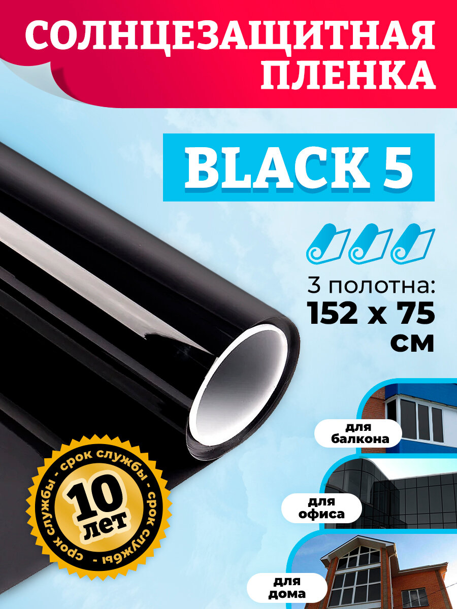 Солнцезащитная пленка на окна Вlack 5. Защитная пленка на стекло - 100х300 см