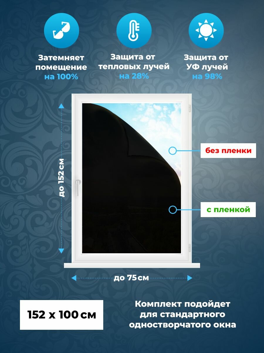 Пленка от солнца на окна Comfort Window. Пленка на окно солнцезащитная. Тонировка черная, комплект на 2-створчатое окно 152х75 х 2 шт