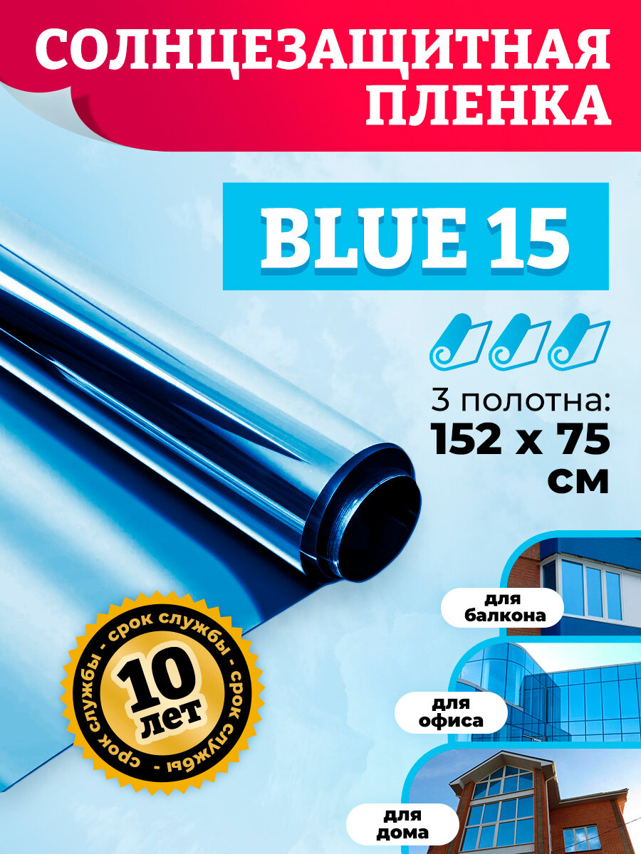 Купить Пленка на окна самоклеящаяся BLUE 15 Комплект на 3 створки: 152х75 см. x3 шт