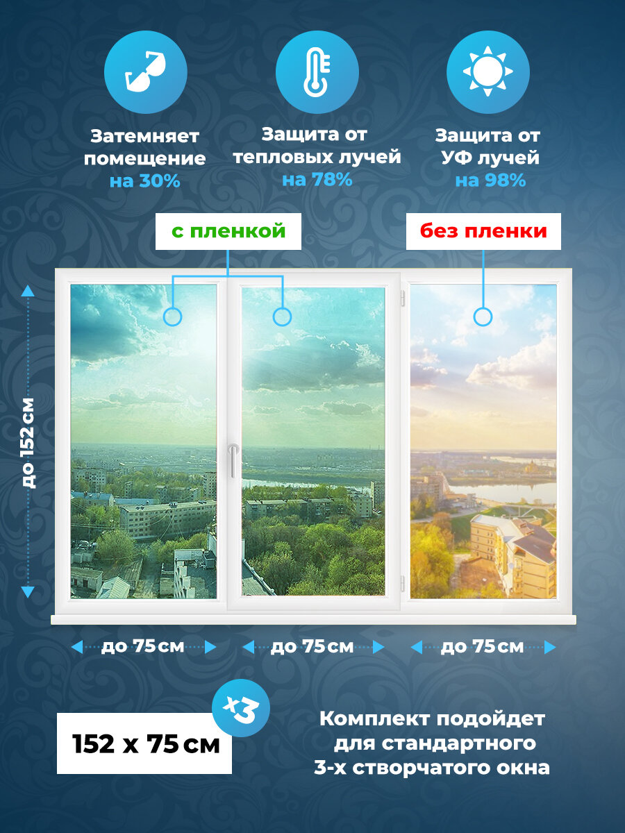 Солнцезащитная пленка для окон. Комплект на 3 створки: 152х75 см. x3 шт