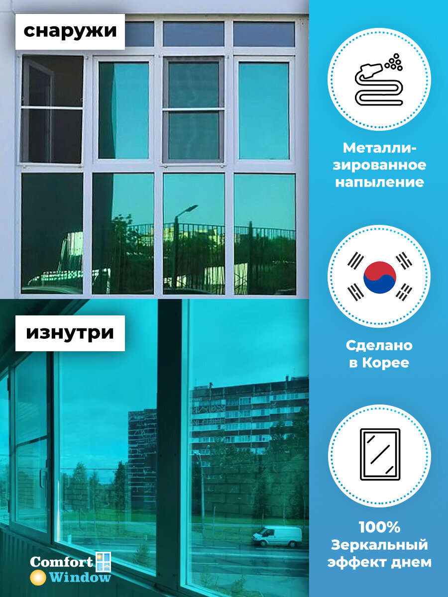 Пленка зеркальная самоклеящаяся на окно BLUE 15 - 152х75 см. x2 шт (комплект)