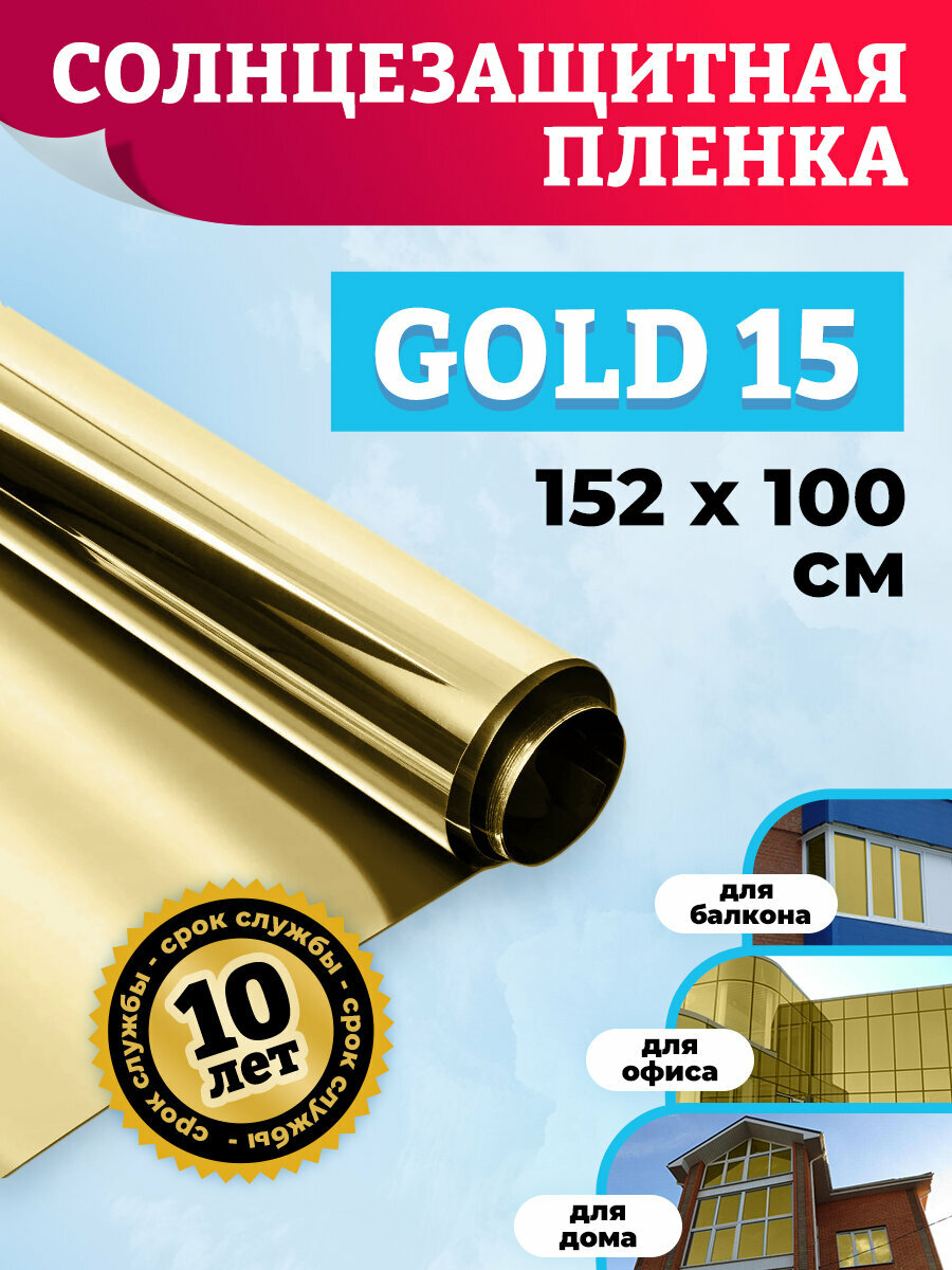 СохранитьПленка на окна солнцезащитная. Самоклеющаяся пленка для окон GOLD 15 - золотая, 152х100 см интересное: