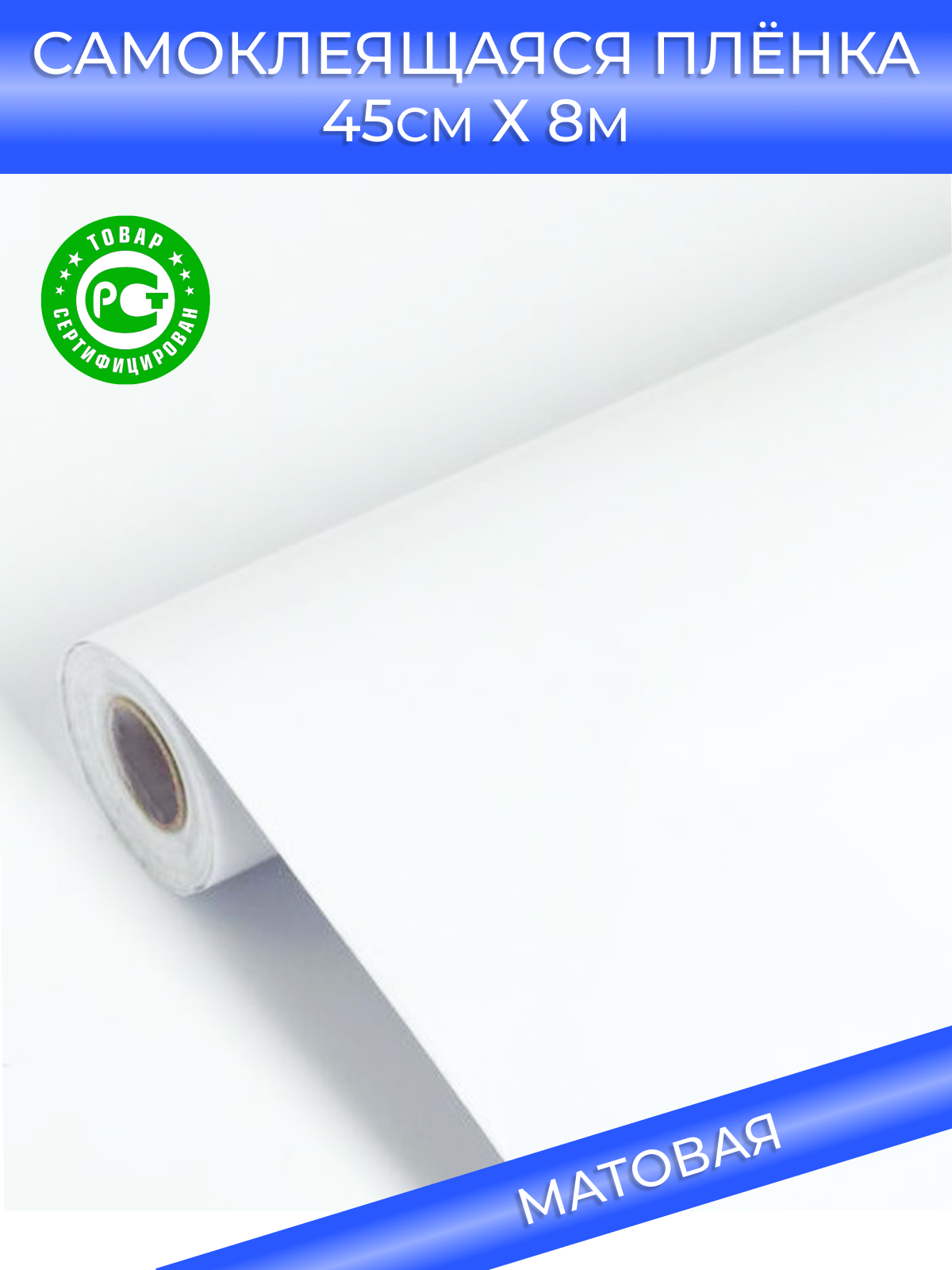 Самоклеящаяся пленка ПВХ для мебели и стен 0,45х 8м белая водостойкая матовая в рулоне для декора самоклеящиеся обои интересное: