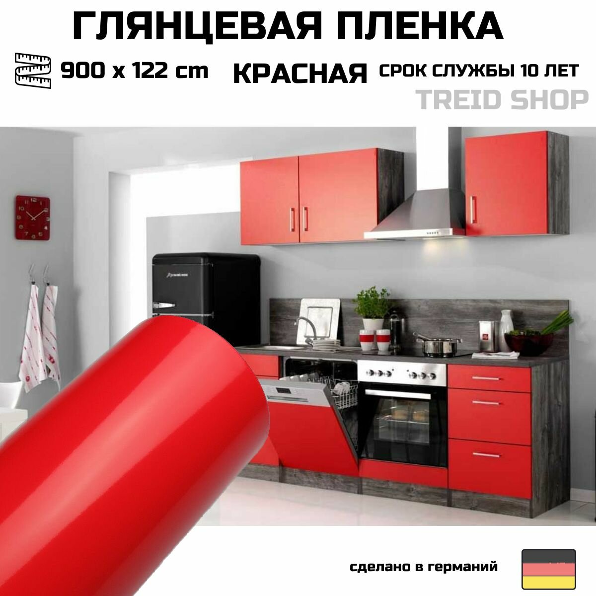 Пленка самоклеющаяся для мебели красная глянцевая для стен для кухни 950 х 122 см