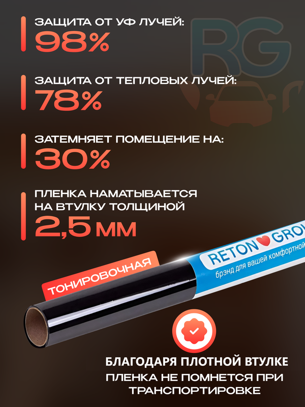 Пленка на окно. Тонировка для окон. Reton Group 35% 152х50 см.