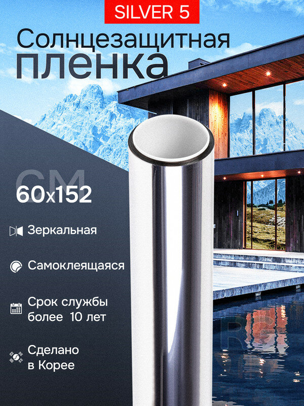 Купить Зеркальная пленка на окна Silver 5 Reton Group. Самоклеющаяся пленка для окон от солнца (серебристая) Размер 60х152 см