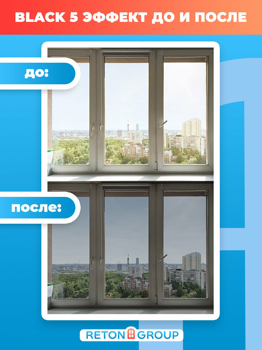 СохранитьПленка на окно солнцезащитная. Тонировка для окон дома Black 5 Reton Group. Отражающая пленка, размер: 152х90 см, цвет: черный. интересное: