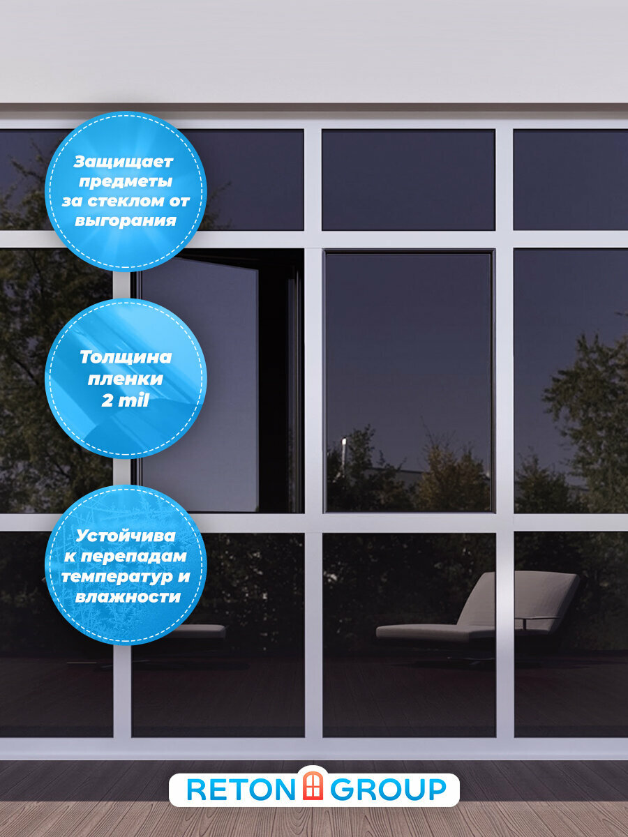 Пленка на окна солнцезащитная. Пленка от солнца Black 15 Reton Group. Тонировка для окон дома. Размер: 152х100 см