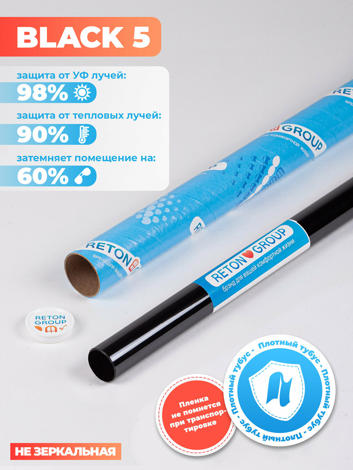 Пленка тонировочная RT black 5. Солнцезащитная пленка для окон, самоклеющаяся - 75х900 см (черная)