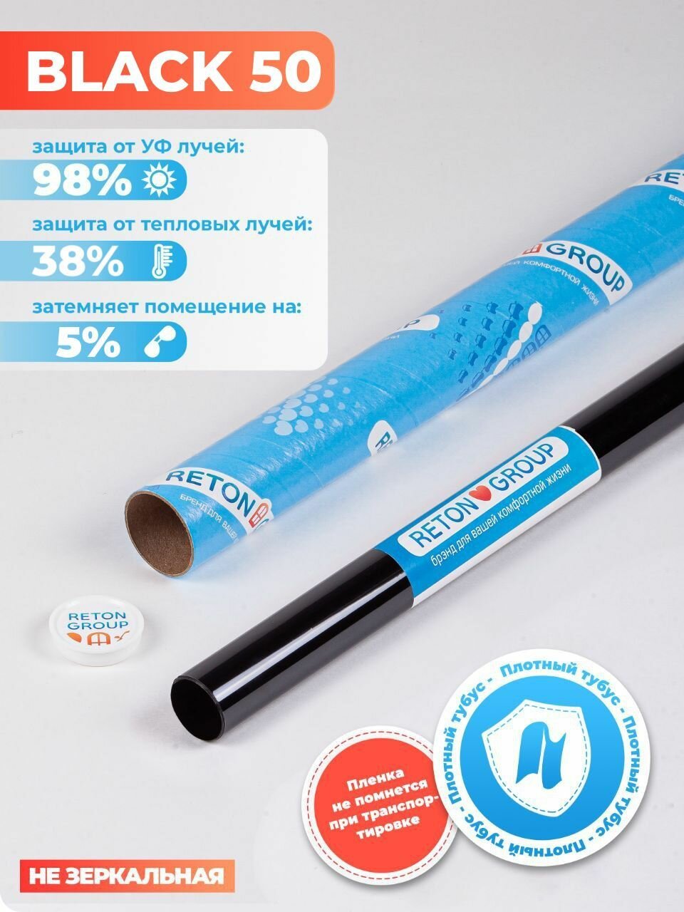 Купить Пленка на окна солнцезащитная Black 50 Reton Group. Тонировка для окон дома ,пленка самоклеющаяся - размер 100х300 см.