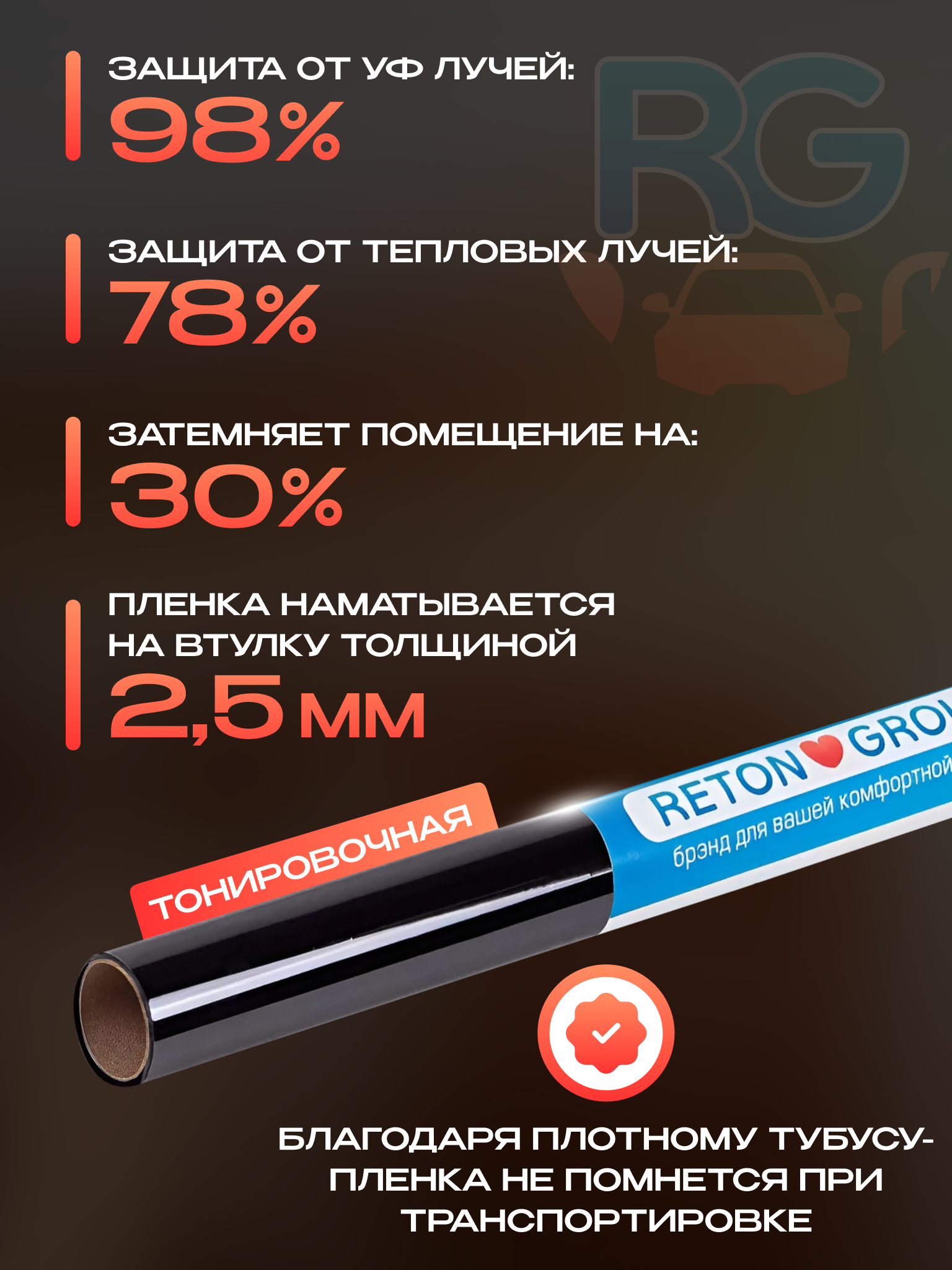Пленка на окно. Тонировка для окон. Reton Group 35% 152х50 см.