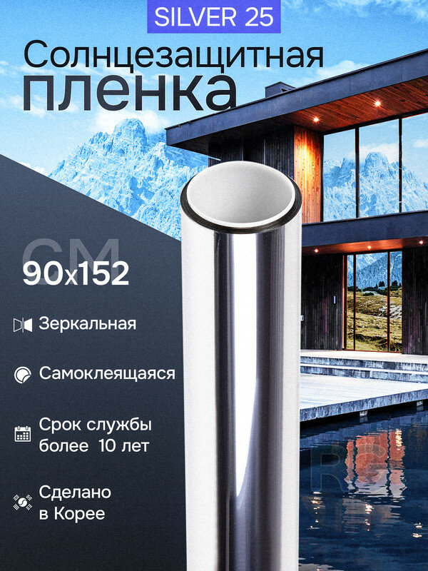 Купить Самоклеящаяся пленка для окон Silver 25 Reton Group. На окна от солнца пленка (серебро) полотно 90х152 см