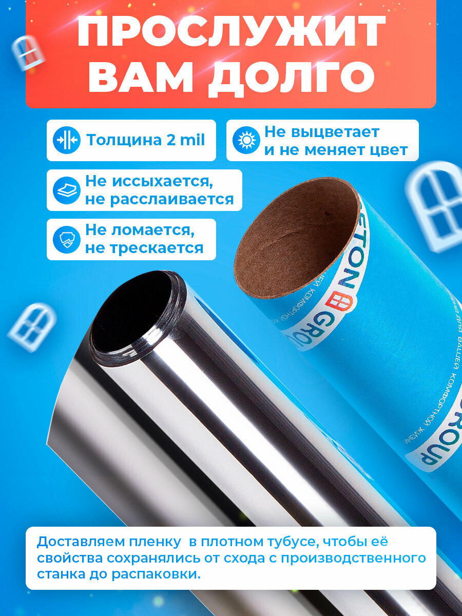 Зеркальная пленка на окна Silver 5 Reton Group. Самоклеющаяся пленка для окон от солнца (серебристая) Размер 60х152 см