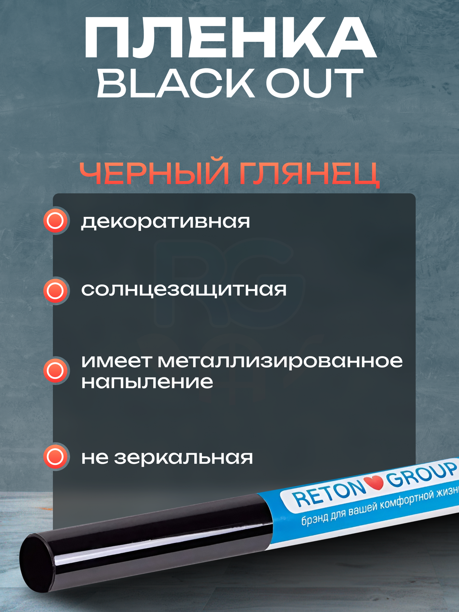 Пленка тонировочная Reton Group Black Out, для окон, 60x152см, самоклеящаяся, водостойкая