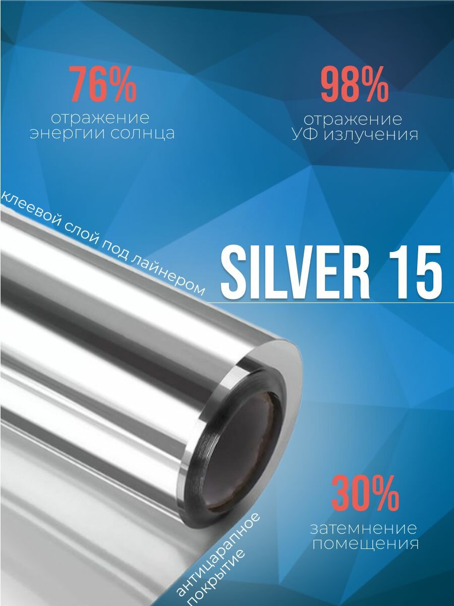 Зеркальная солнцезащитная пленка Silver 15, 1,52х2
