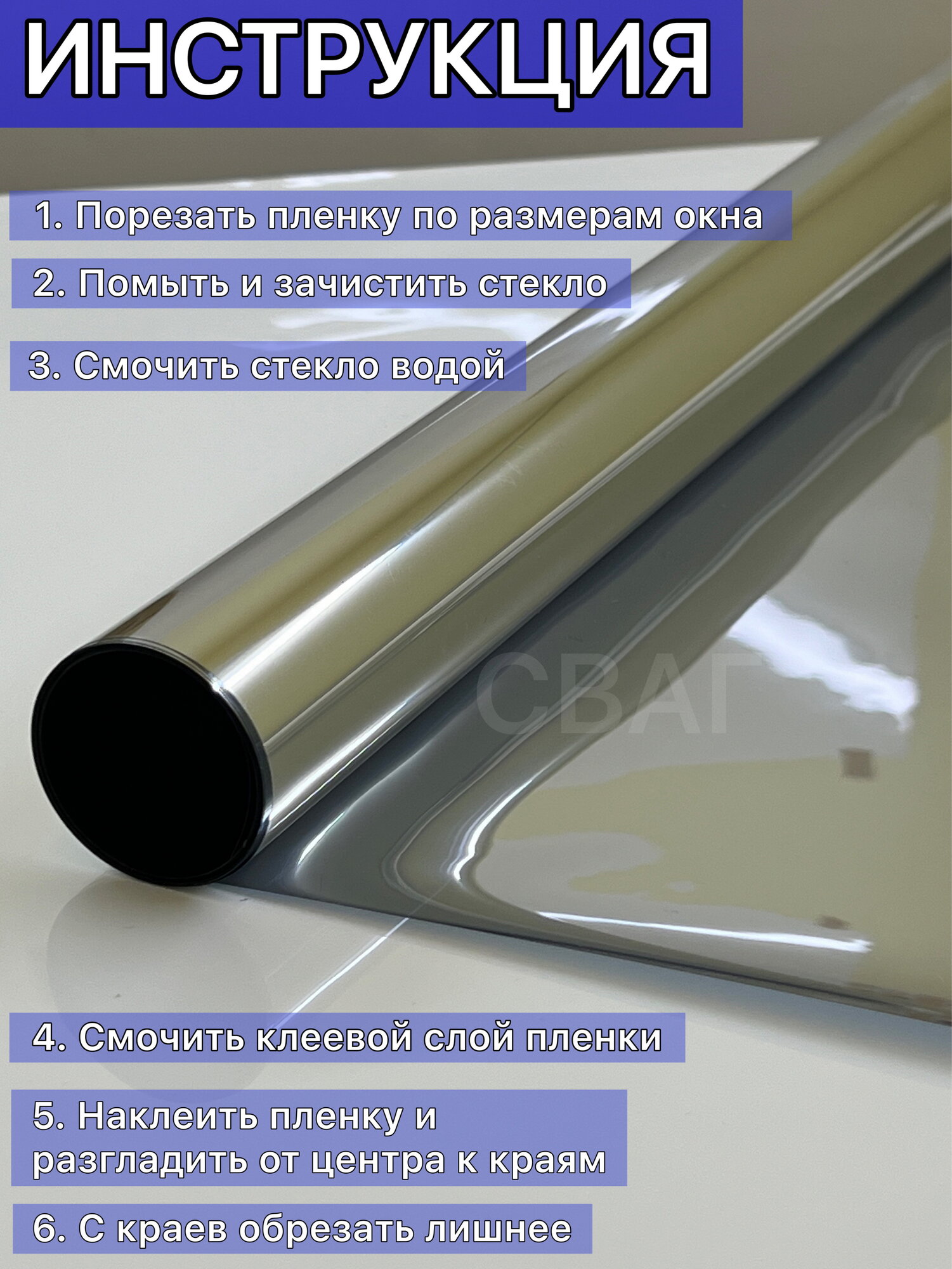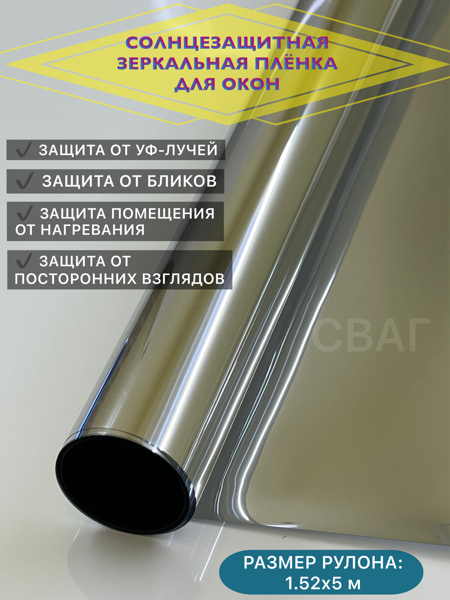 Зеркальная солнцезащитная пленка Silver 15, 152х100 см
