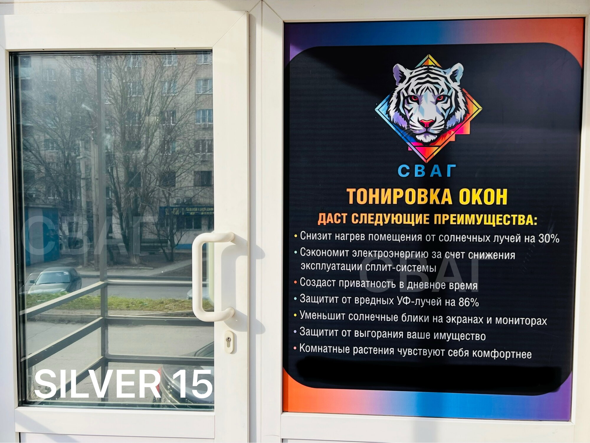 Зеркальная солнцезащитная пленка Silver 15, 152х500 см