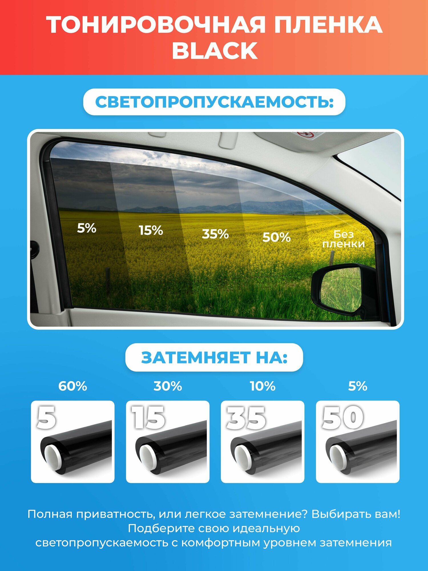 Тонировка для окон 5%. Пленка на окна солнцезащитная (черная) BLACK 5, размер: 152х50 см