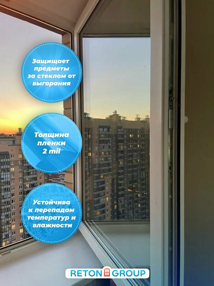 СохранитьСолнцезащитная пленка на окна Grey 15 Reton Group. Зеркальная пленка самоклеющаяся серая 50х152см интересное: