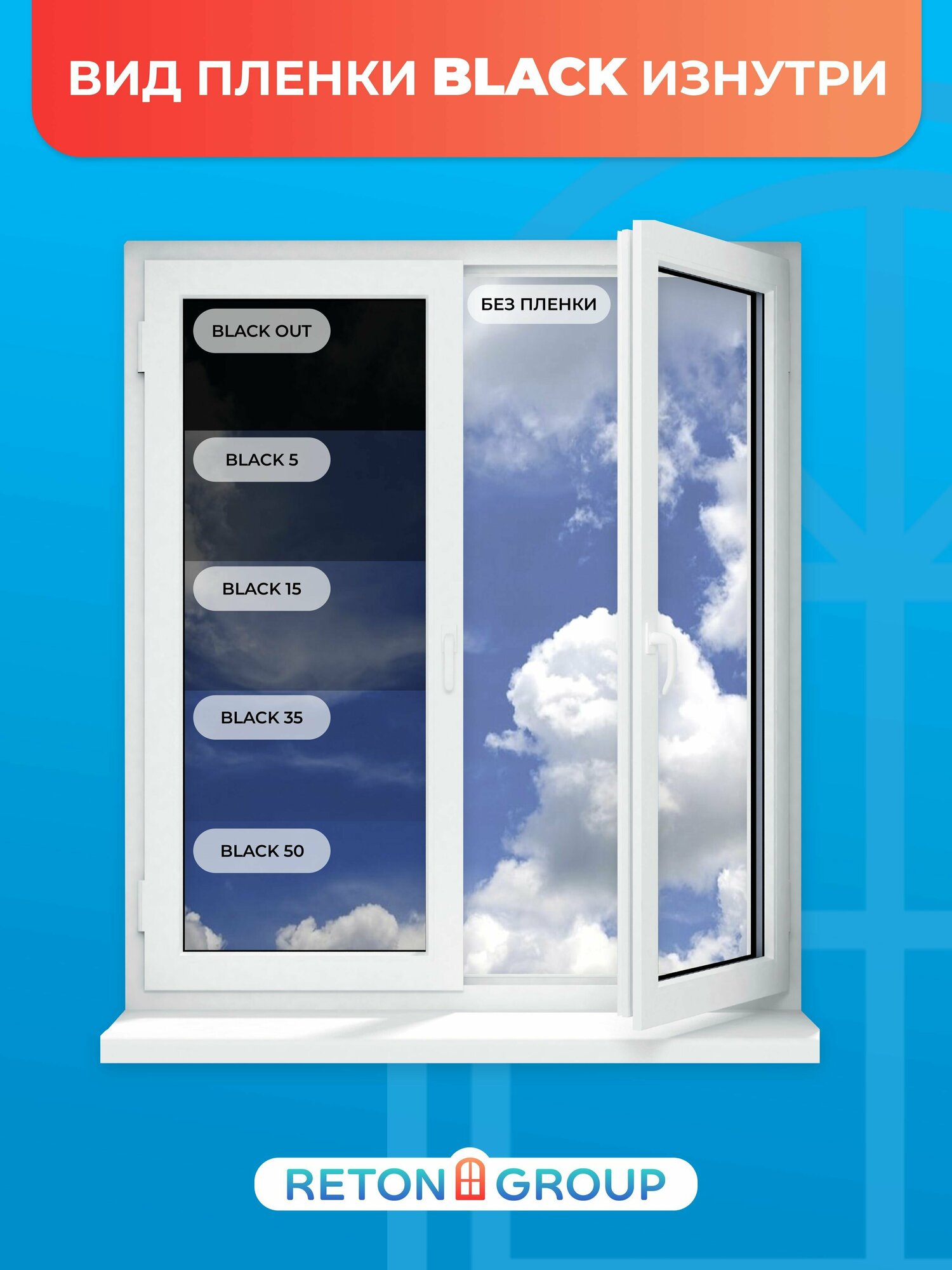 Пленка на окна от солнца. Пленка солнцезащитная на окно самоклеющаяся. Пленка от солнца (черная) Black 5 Reton Group. Размер: 152х80 см