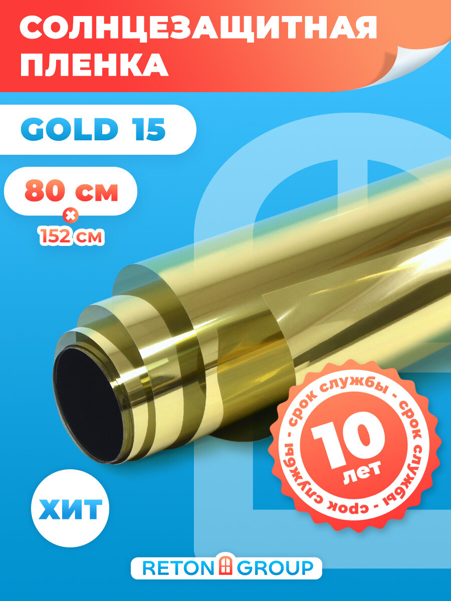 Пленка на окна солнцезащитная Gold 15 Reton Group. Пленка тонировочная для окон: 152х50 см, цвет: золотой.