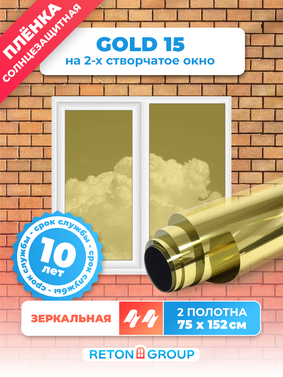Зеркальная пленка на окна Gold 15 Reton Group. Самоклеющаяся пленка для окон от солнца: 152х75 x 3 шт, цвет:золотой.
