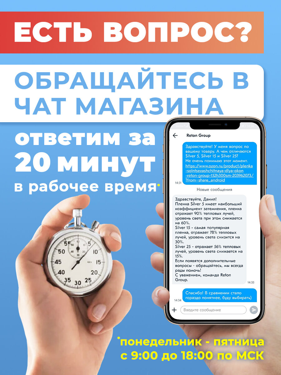 | Дополнительная информация | silver 5; отражает: 90% тепловых лучей, 98% УФ лучей, уровень света снизится на 60%, silver 15; отражает: 78% тепловых лучей, 98% УФ лучей, уровень света снизится на 30%, silver 25; отражает: 56% тепловых лучей, 98% УФ лучей, уровень света снизится на 15%, silver 35; отражает: 44% тепловых лучей, 98% УФ лучей, уровень света снизится на 5%, gold 25; отражает: 65% тепловых лучей, 98% УФ лучей, уровень света снизится на 15%, bronze 10; отражает: 82% тепловых лучей, 98% УФ лучей, уровень света снизится на 35%, в комплект входят; 1 полотно зеркальной тонировки 152х100 см, подробная инструкция по установке, толщина пленки 2 mil |