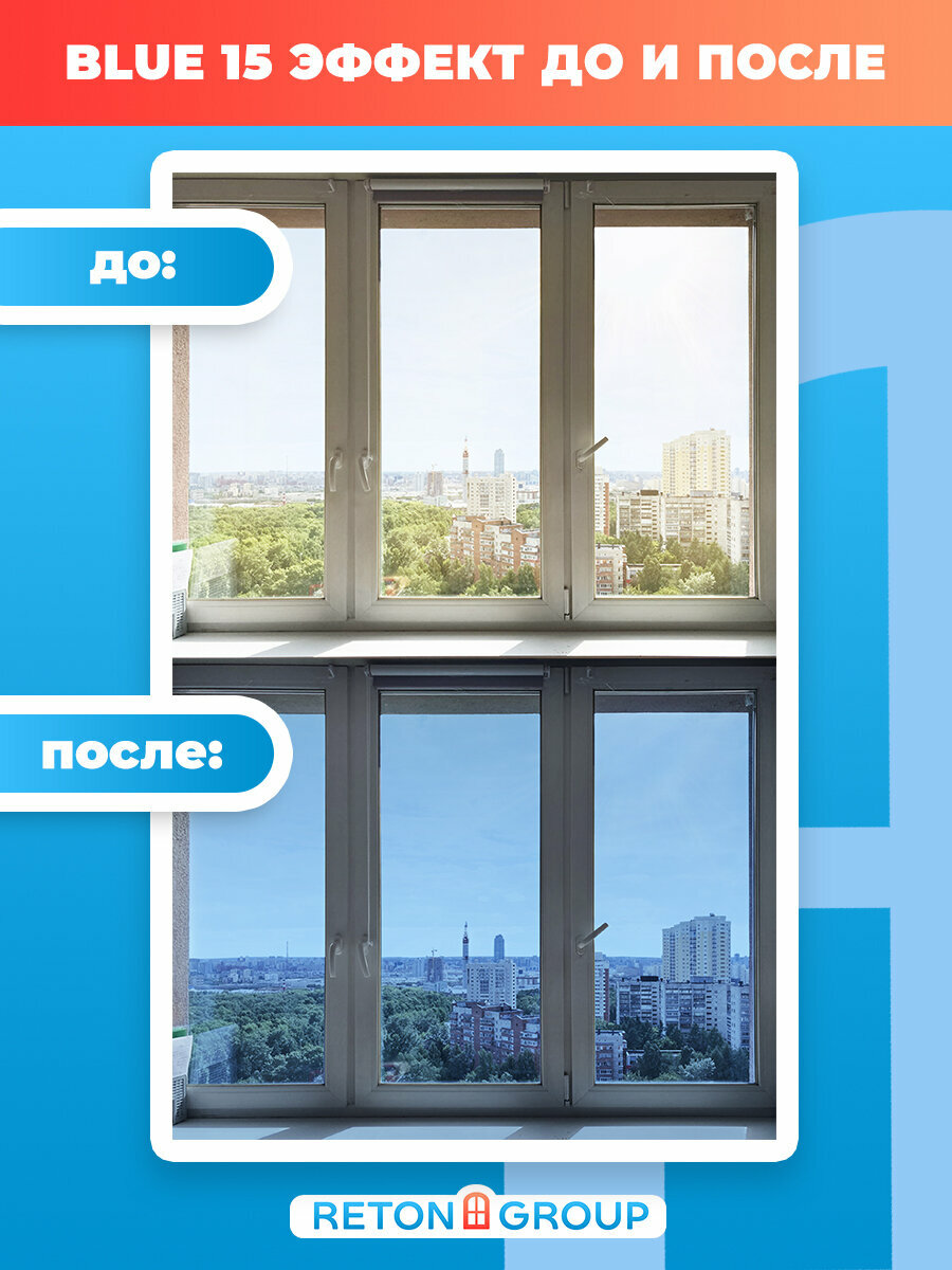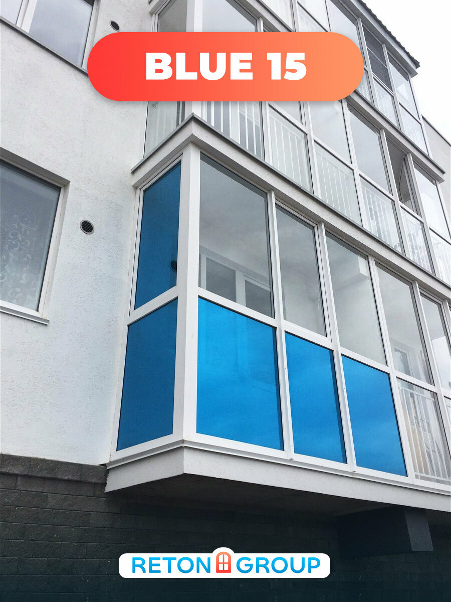 Зеркальная Солнцезащитная пленка для окон. Самоклеющаяся пленка для окон Blue 15 ( комплект на шесть створок) 75х152см - 6 шт.