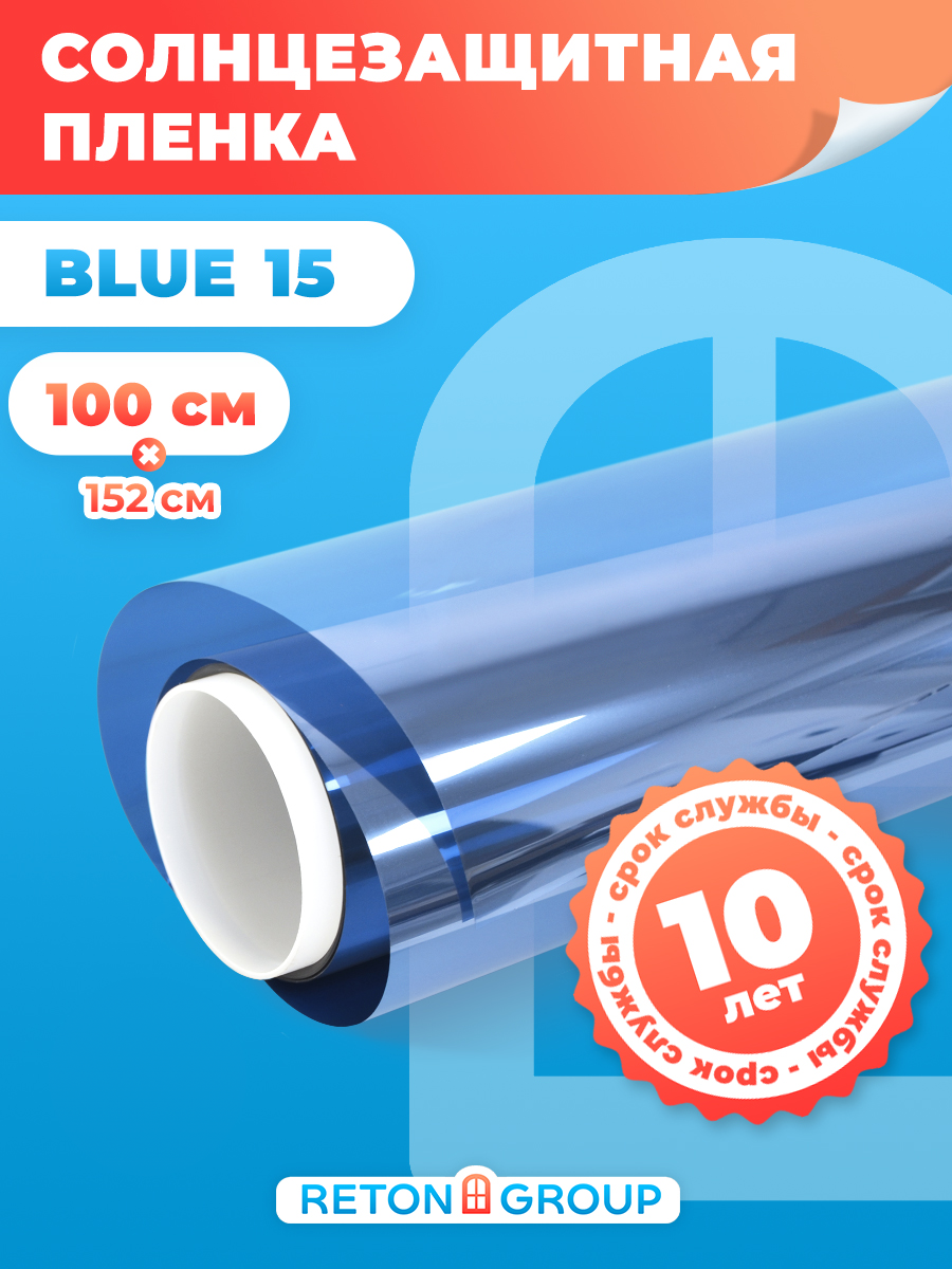 Пленка солнцезащитная для окон. Зеркальная пленка на окна Blue 15. Тонировка для окон дома 100х152 см.