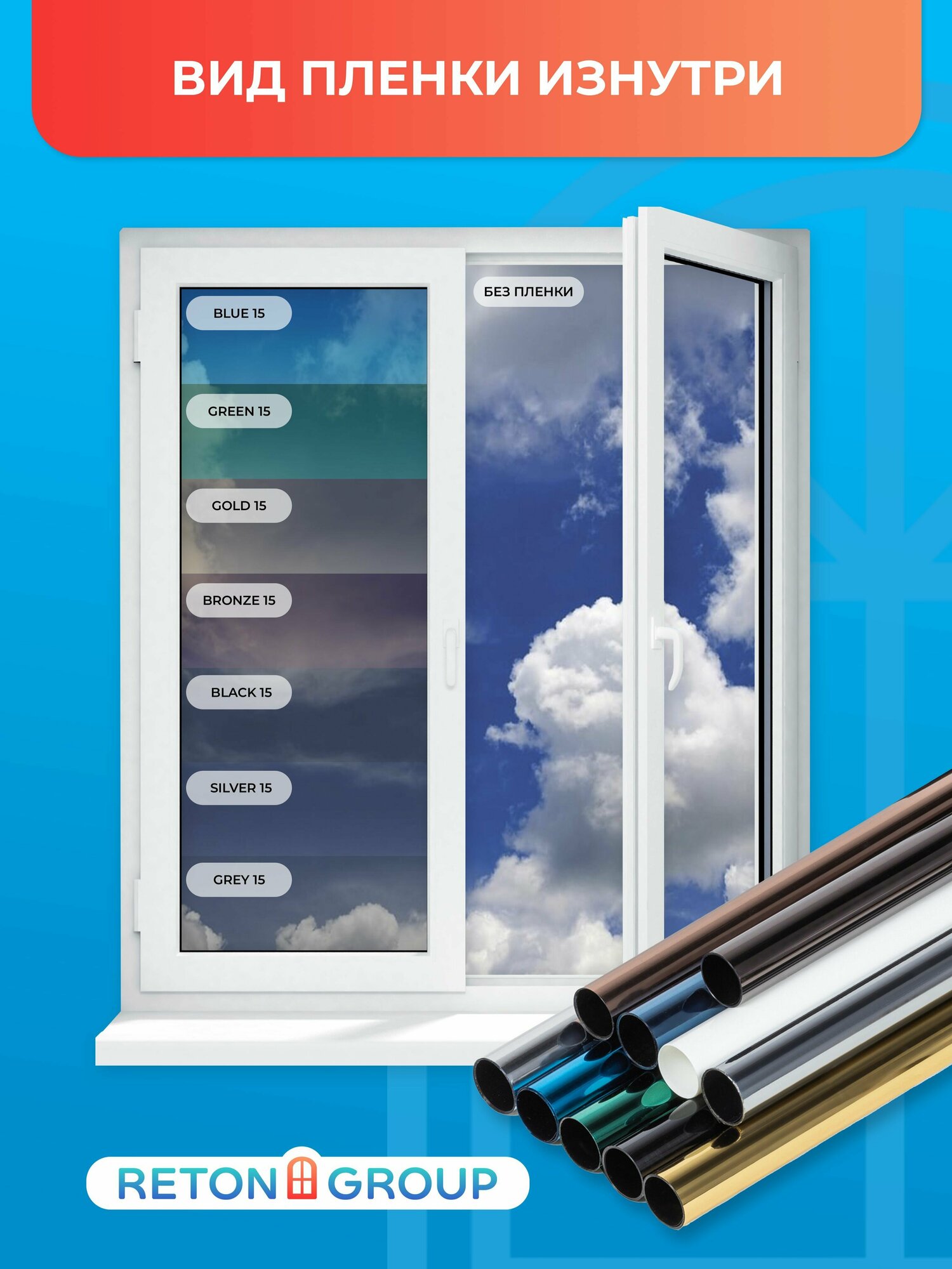 Пленка на окна от солнца. Пленка солнцезащитная на окно самоклеющаяся Bronze 10 Reton Group (бронзовая): 152x75см - 10 шт