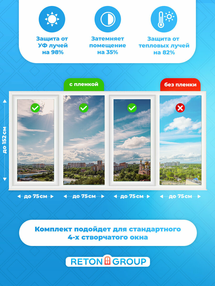 СохранитьПленка солнцезащитная для окон. Пленка самоклеющаяся на окна Bronze 10 Reton Group , зеркальная бронзовая: 152x75 х 4 шт. интересное: