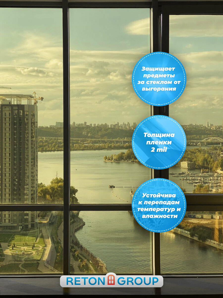 СохранитьПленка на окна солнцезащитная. Зеркальная пленка на окна Gold 15 Reton Group, cветоотражающая, золотая: 100x152 см интересное: